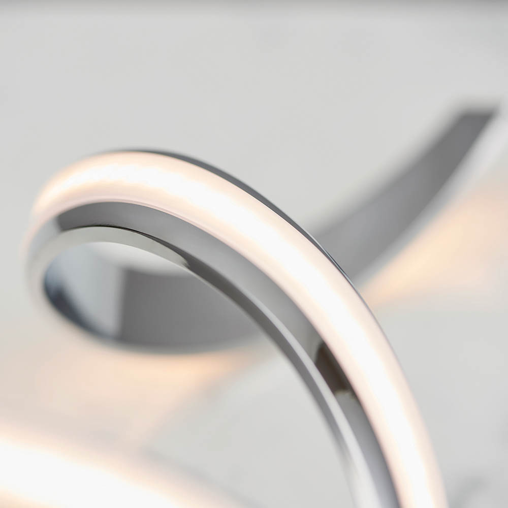 A unique contemporary table light with flowing illuminated curves, a perfect addition to today's modern interiors. Chrome plated finish with white diffuser and Integrated LED.