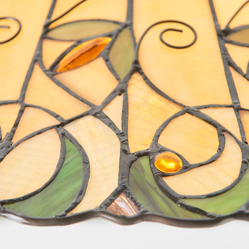 The pretty Jamelia large pendant features subtle colours and amber glass beads, teamed with a highlighted satin black fitting. Dimmable and compatible with LED lamps