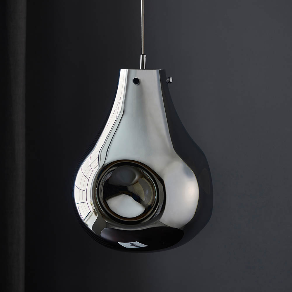 Elevate your interior with our stunning, chrome coloured molten glass pendant with chrome plated metalwork. Featuring a range of coloured metallic glass, this simple design has a pleasing fluidity thanks to its organic appearance. Combine with matching items in this range for a bold and cohesive look.