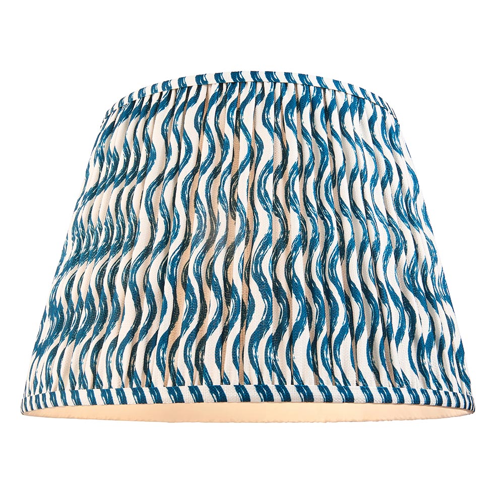 This natural floor lamp features stacking spheres of bamboo wood, with a 40cm tapered shade in vibrant marlin blue ripple pattern design. A versatile design style that would look at home in both classic and modern interiors.