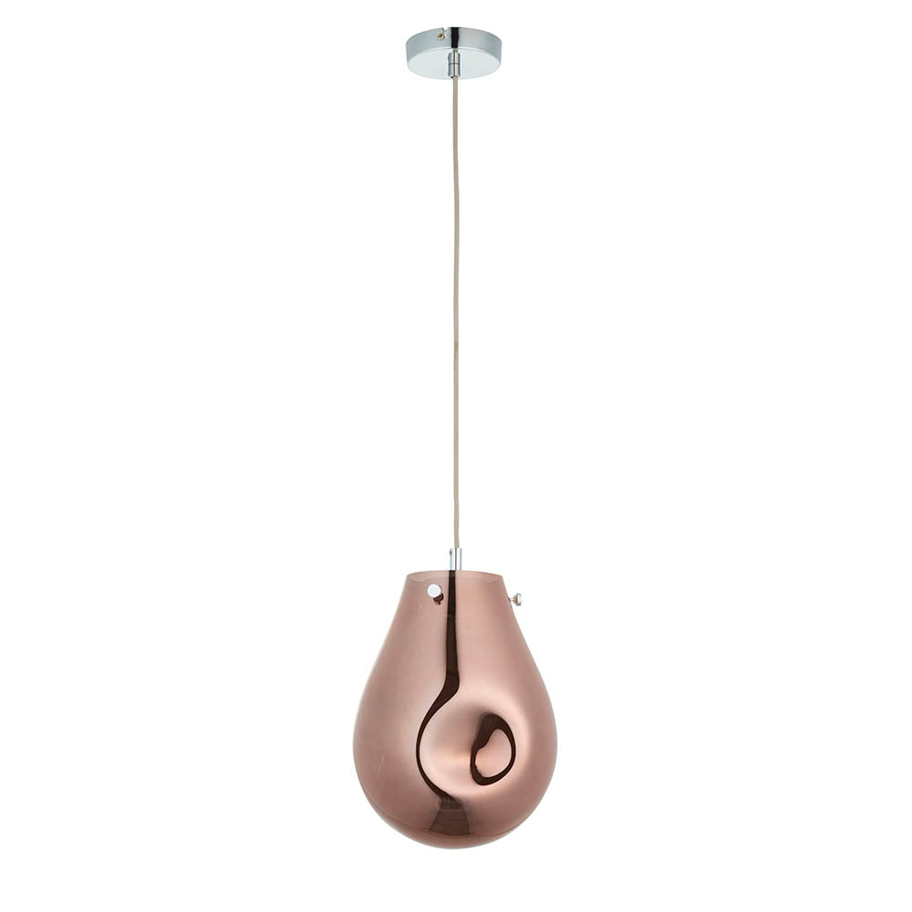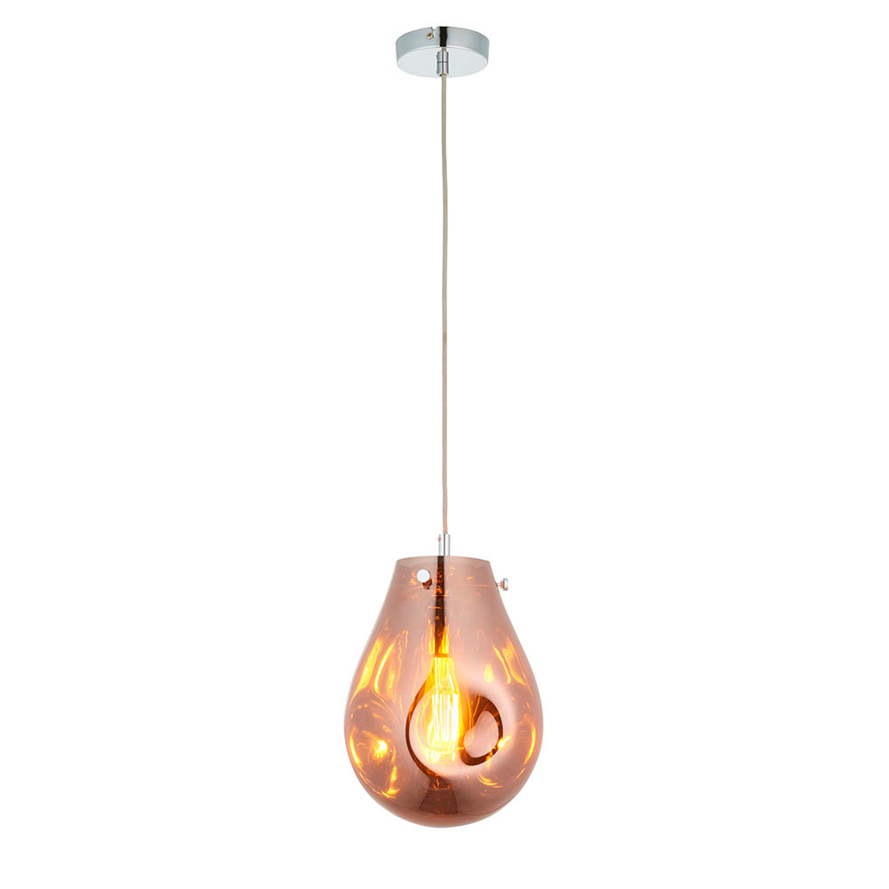 Elevate your interior with our stunning, copper coloured molten glass pendant with chrome plated metalwork. Featuring a range of coloured metallic glass, this simple design has a pleasing fluidity thanks to its organic appearance. Combine with matching items in this range for a bold and cohesive look.
