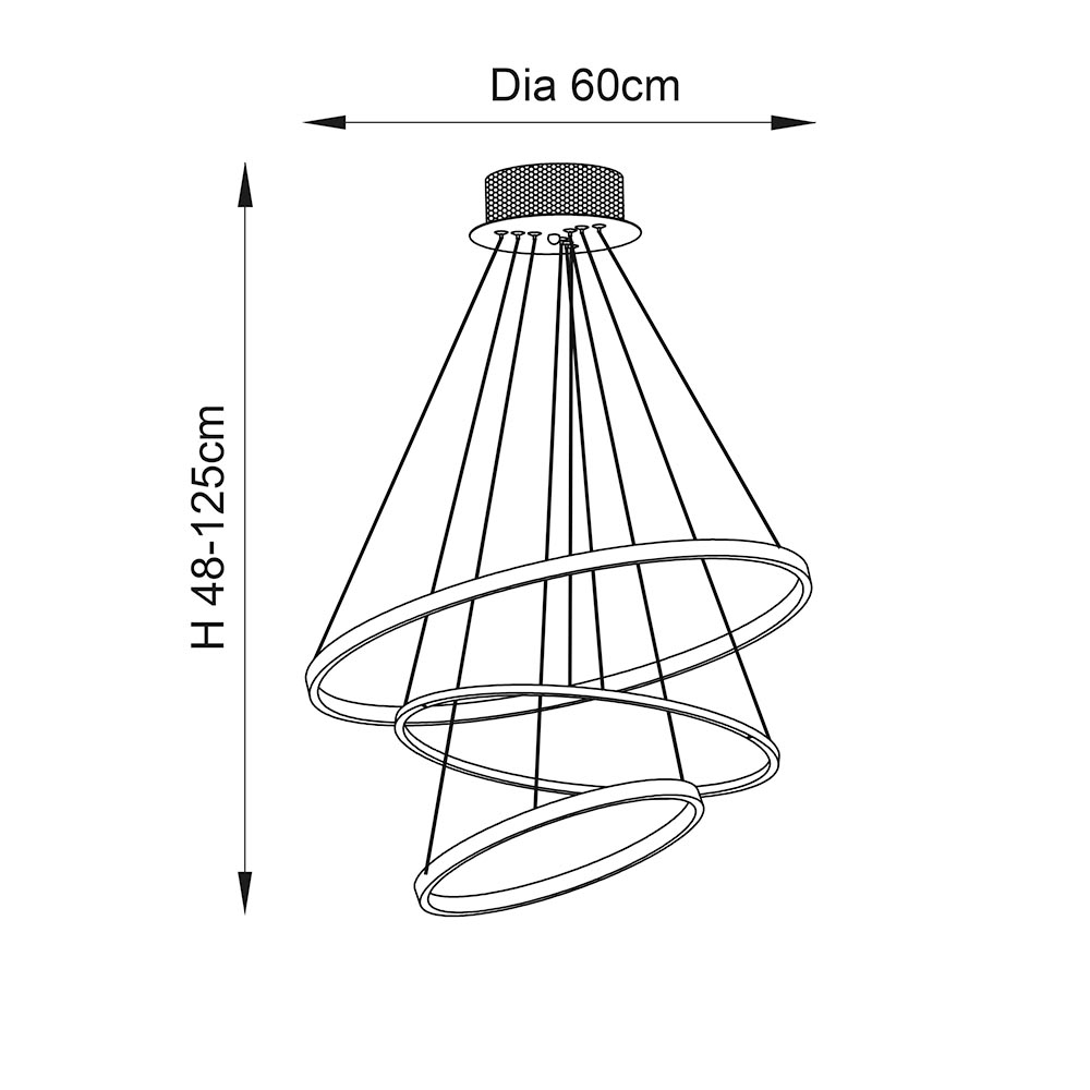 An impressive contemporary multi hoop LED pendant. Polished chrome concentric circles enclose clear crystals that diffuse the integrated LED light, creating a stunning modern design. Delicately suspended from height adjustable clear cables.
