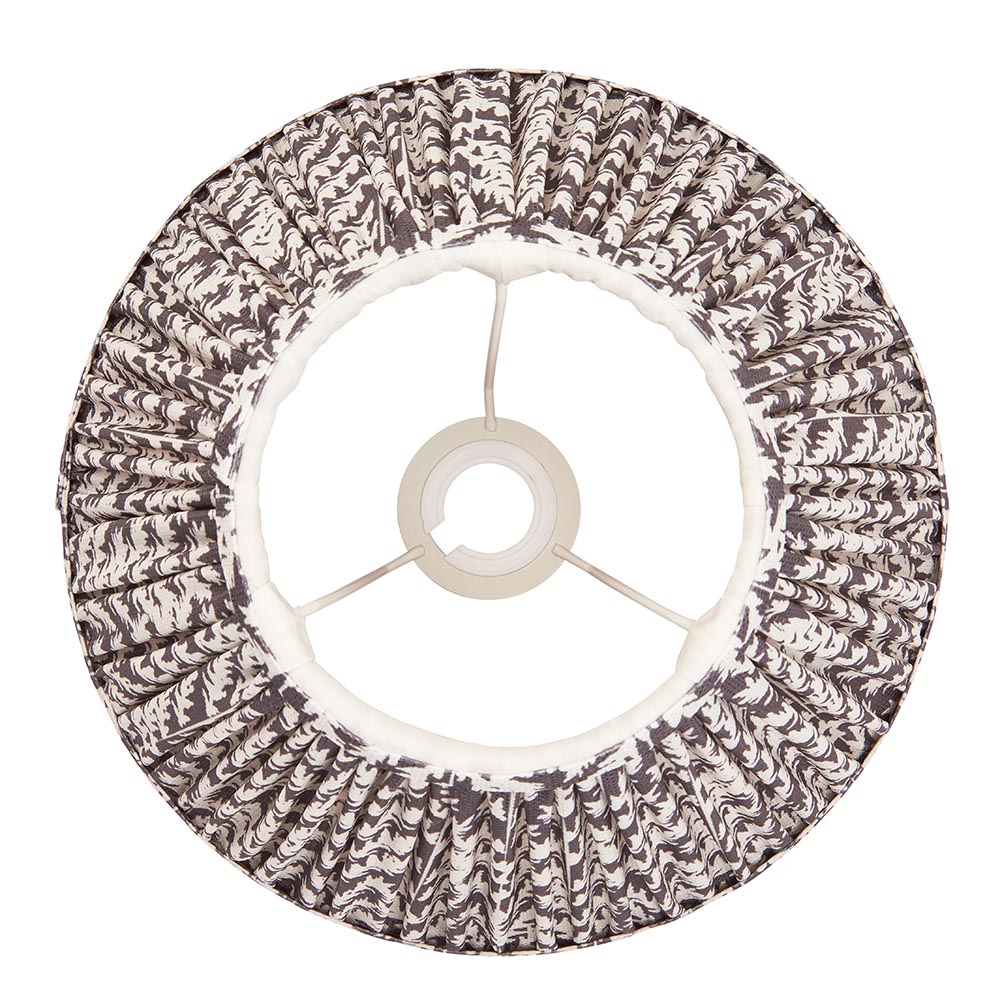 30cm tapered shade with white gimbal. Unique leaf pattern design in a subtle pearl grey colour with taped edge detailing and plain inner lining. Perfect when paired with one of our beautifully decorative table lights.