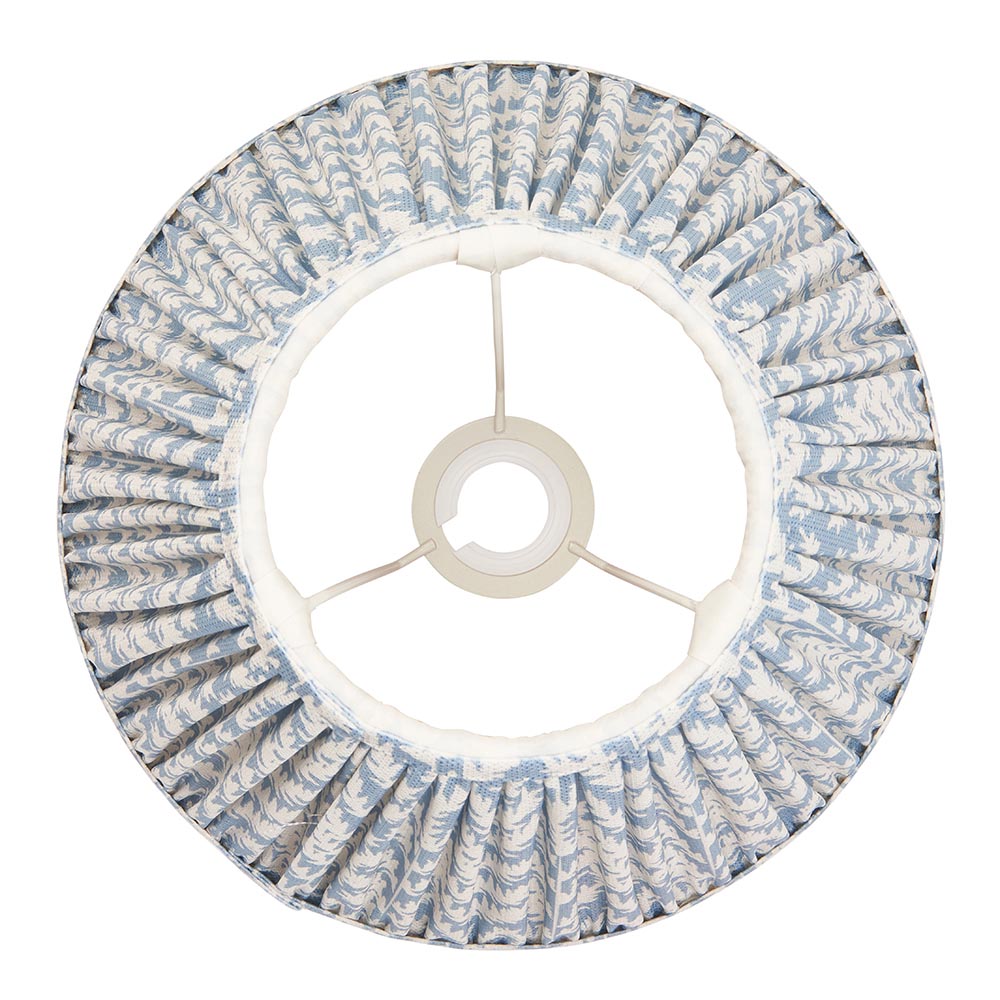 30cm tapered shade with white gimbal. Unique leaf pattern design in a subtle shell bay blue colour with taped edge detailing and plain inner lining.
