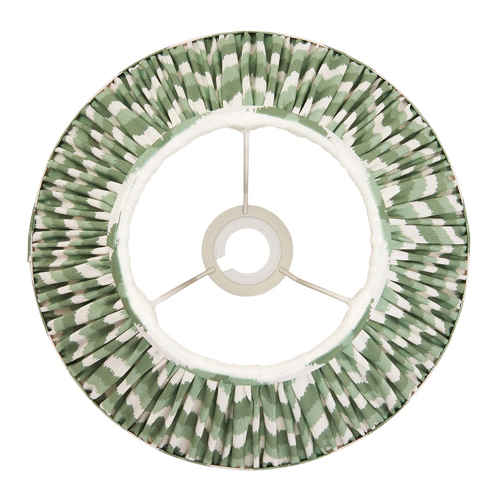 30cm tapered shade with white gimbal. Zigzag pattern in Cotswold green colour with taped edge detailing and plain inner lining.