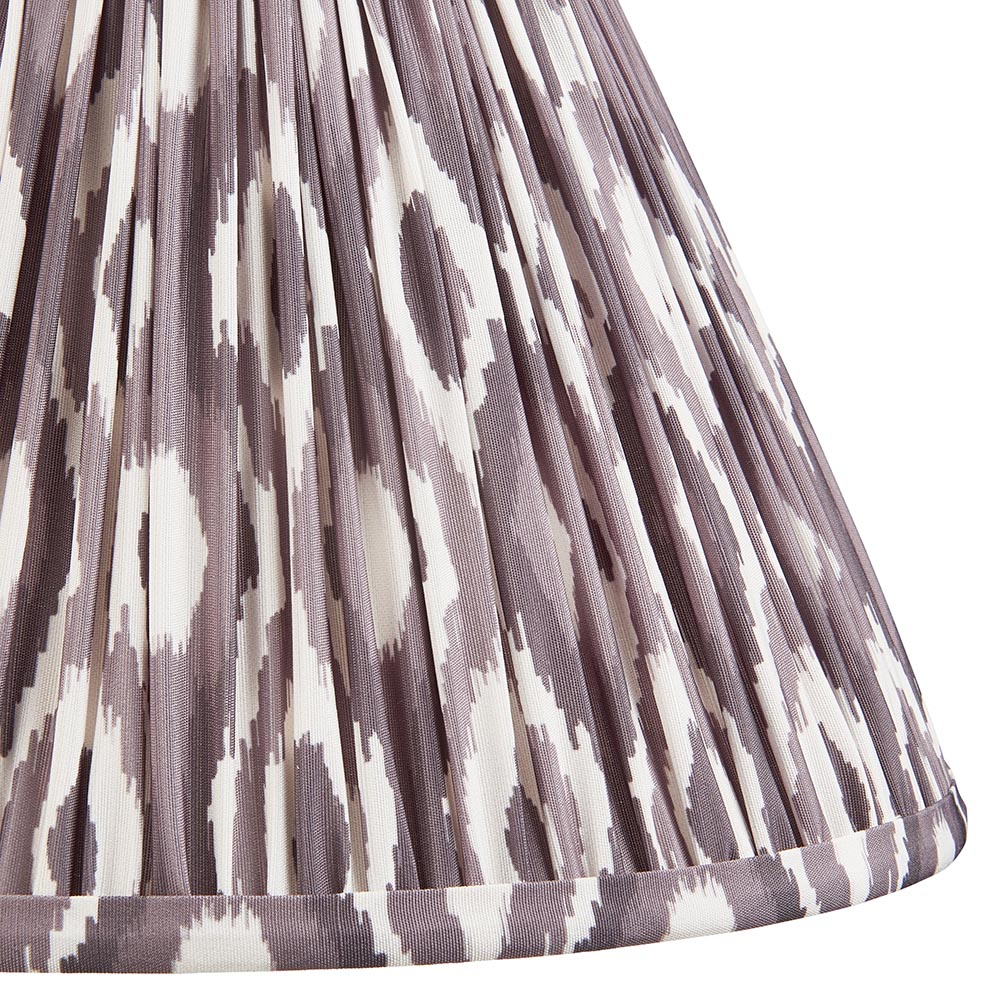 30cm tapered shade with white gimbal. Unique Ikat pattern design in pearl grey with taped edge detailing and plain inner lining.