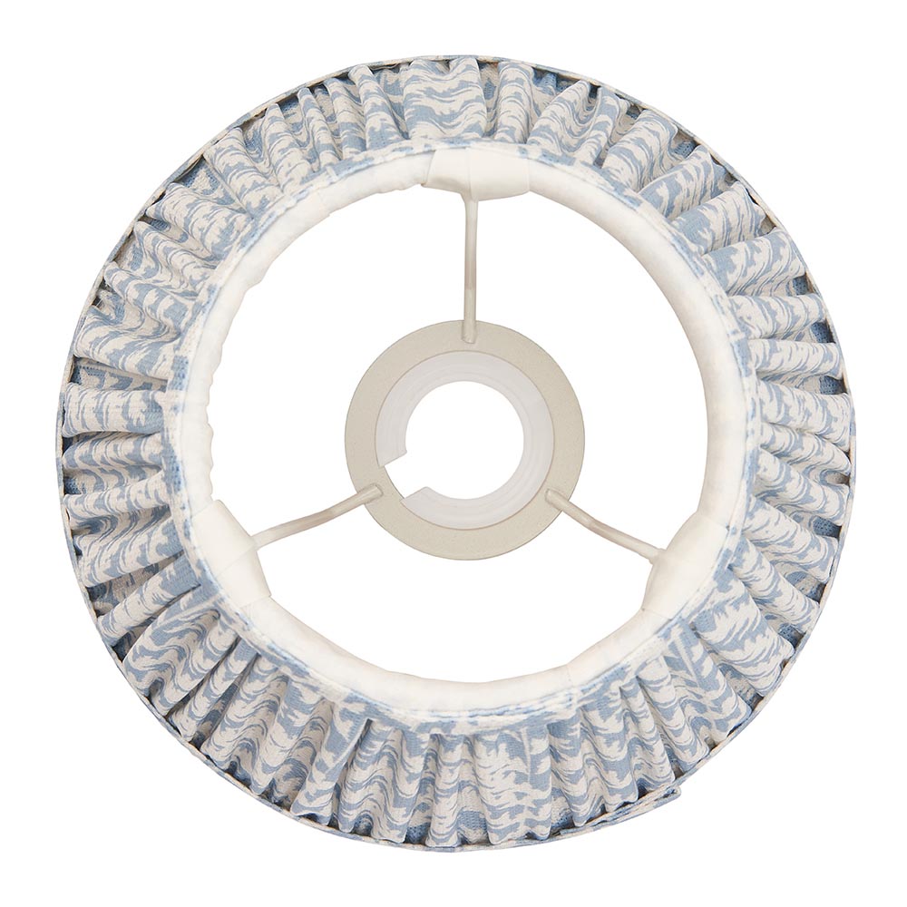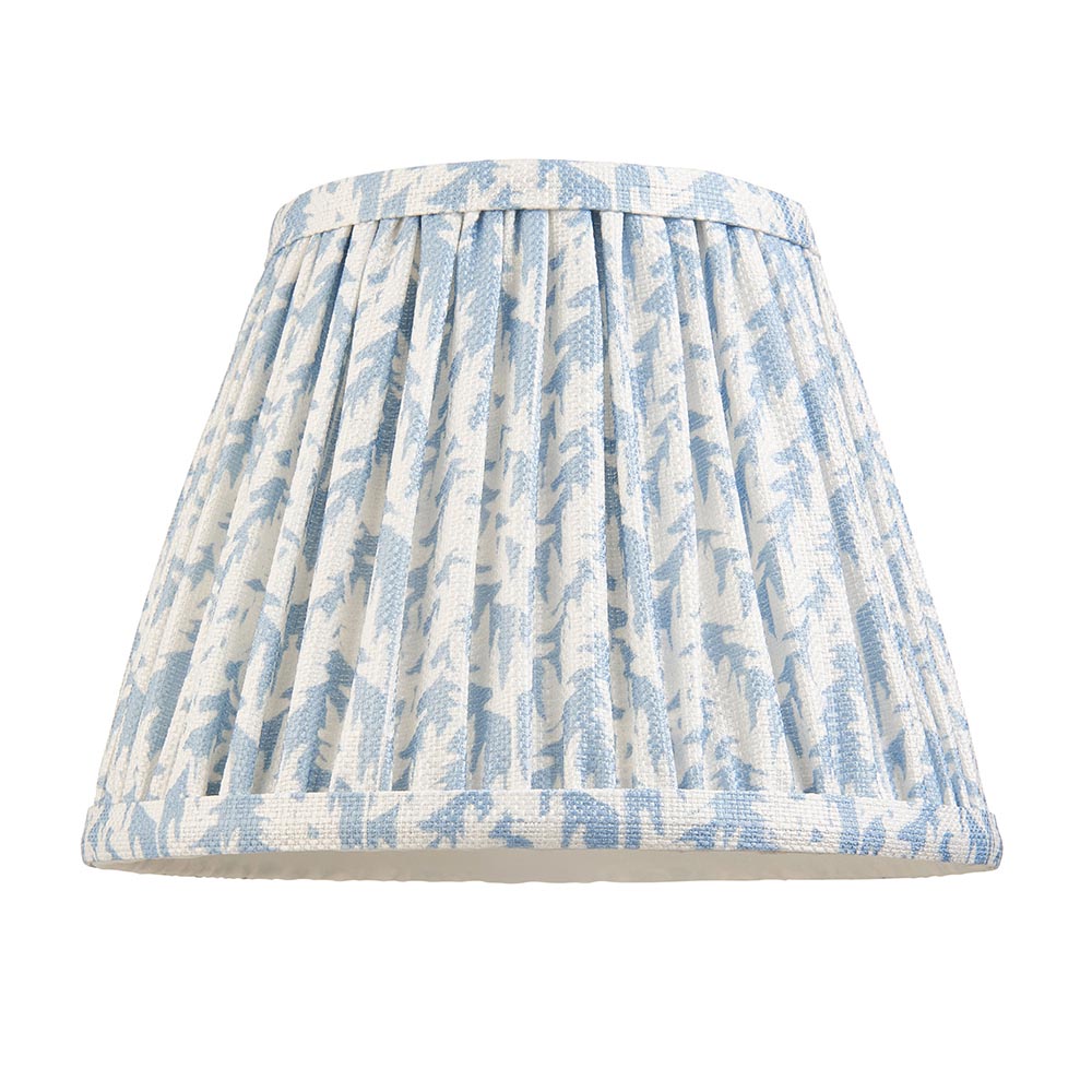 20cm tapered shade with white gimbal. Unique leaf pattern design in a subtle shell bay blue colour with taped edge detailing and plain inner lining.