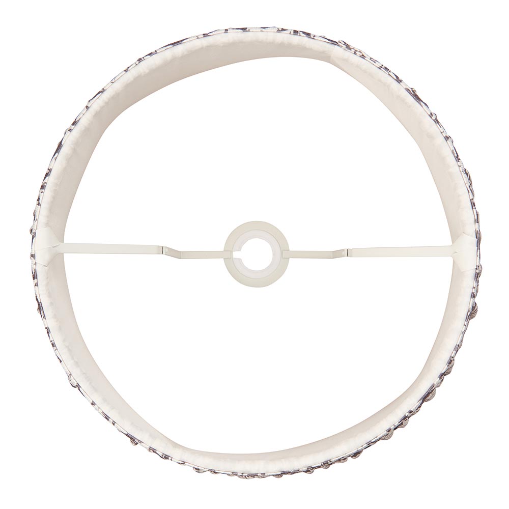 35cm tapered shade with reversible white gimbal. Unique leaf pattern design in a subtle pearl grey colour with taped edge detailing and plain inner lining. Perfect when paired with one of our beautifully decorative table lights, floor lights and cable sets.