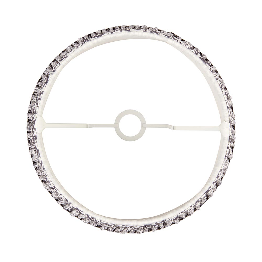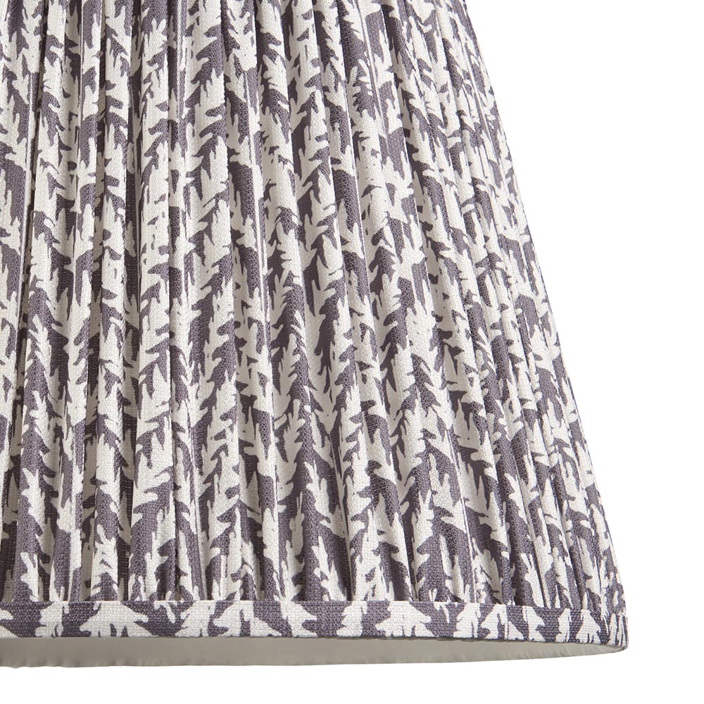 40cm tapered shade with reversible white gimbal. Unique leaf pattern design in a subtle pearl grey colour with taped edge detailing and plain inner lining. Perfect when paired with one of our beautifully decorative floor lights and cable sets.