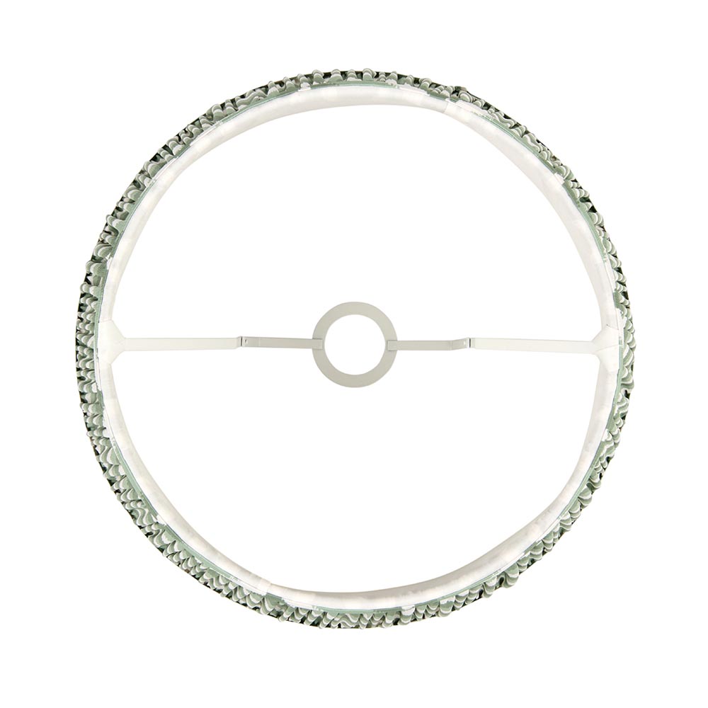 40cm tapered shade with reversible white gimbal. Zigzag pattern in Cotswold green colour with taped edge detailing and plain inner lining.