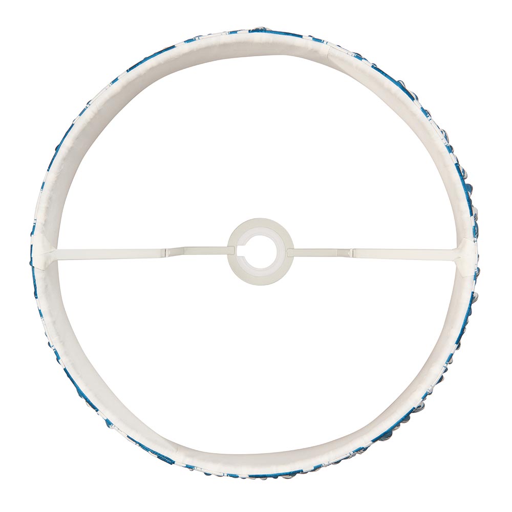 40cm tapered shade with reversible white gimbal. Unique Ikat pattern design in marlin blue with taped edge detailing and plain inner lining.