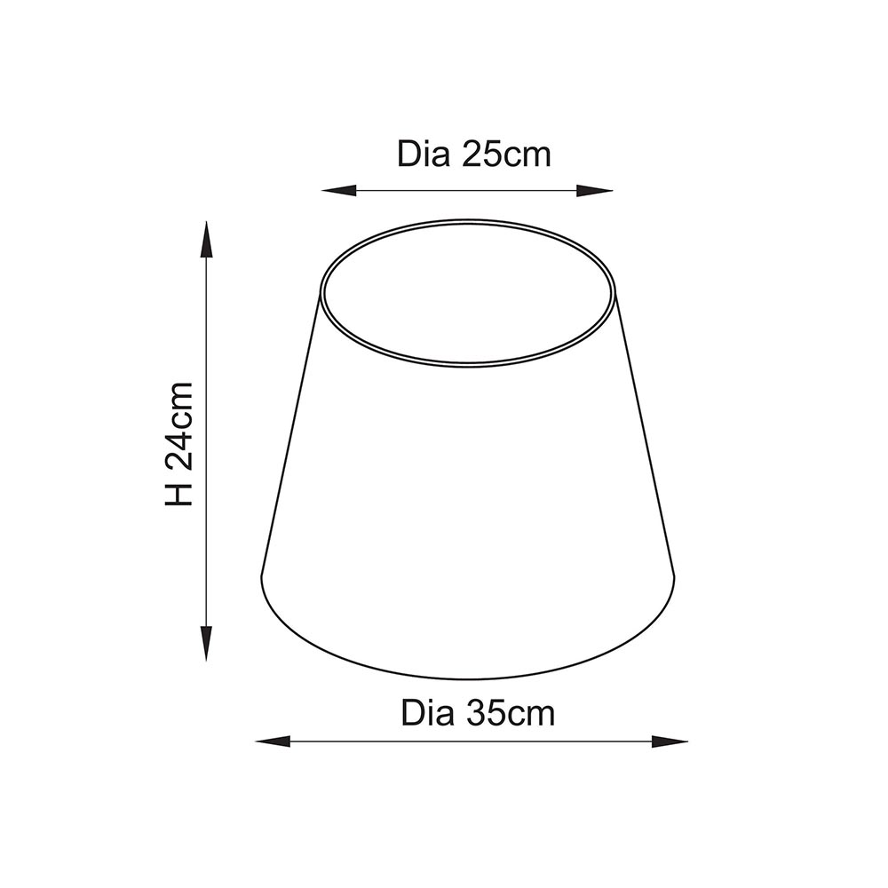 35cm tapered shade with reversible white gimbal. Unique Ikat pattern design in neutral tone colours with taped edge detailing and plain inner lining.