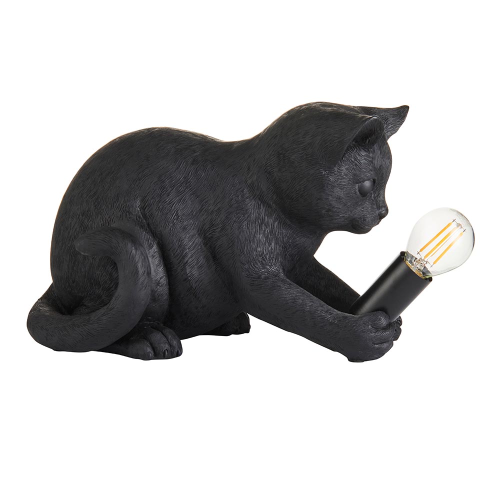 Introduce playfulness with the kitten table light; ideal for cat lovers and those who love a quirky style. This high quality detailed resin figurine is finished in matt black. Suitable for all rooms, this table light comes with an inline on/off switch and 1.5 metre black fabric cable. Twin with E14 LED filament lamp for an 'on-trend' look.
