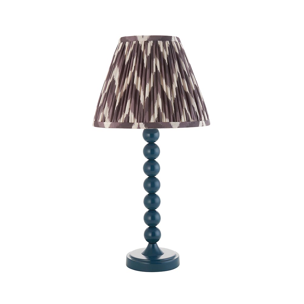 Add some colour to your home with this playful table light. Multiple stacked metal spheres finished in gloss marlin blue paint with an E14 lamp holder, in-line on/off switch and colour matched fabric flex. Paired with our stylish pearl grey 25cm Zigzag shade to complete this perfect colour addition to your home.