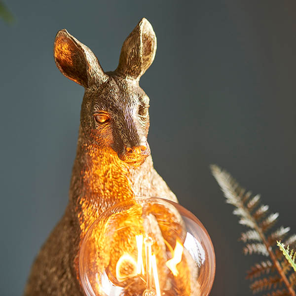 Filled with personality this Kangaroo table light, finished in vintage gold paint, adds character to homes. Pair with a filament lamp for a modern look.