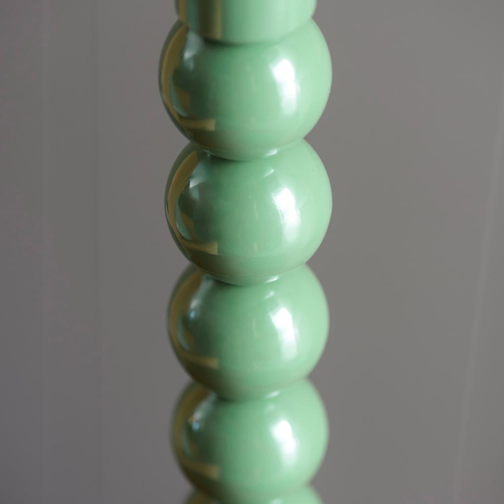 Add some colour into your home with this playful table light base. Multiple stacked metal spheres finished in gloss Cotswold green paint with E14 lamp holder, in-line on/off switch and colour matched fabric flex.