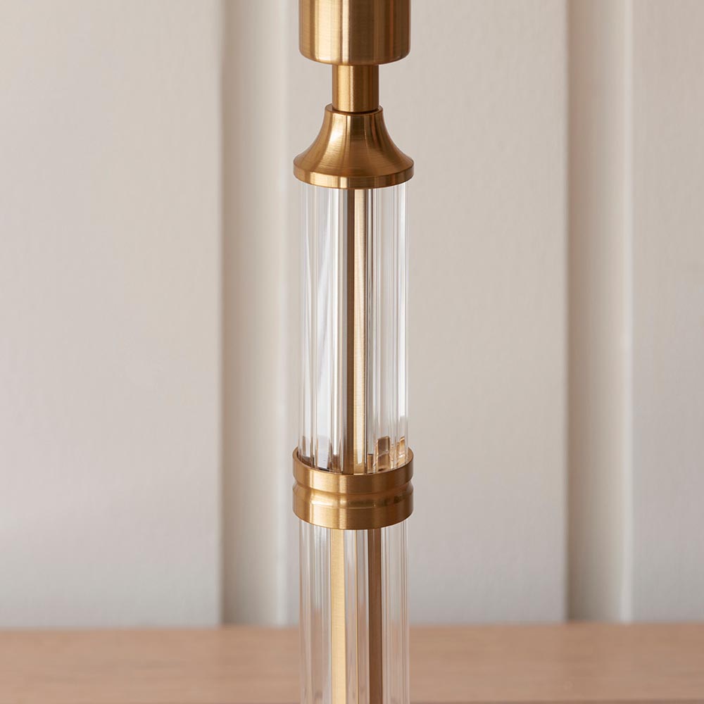 - Brushed aged brass plated and clear acrylic detail