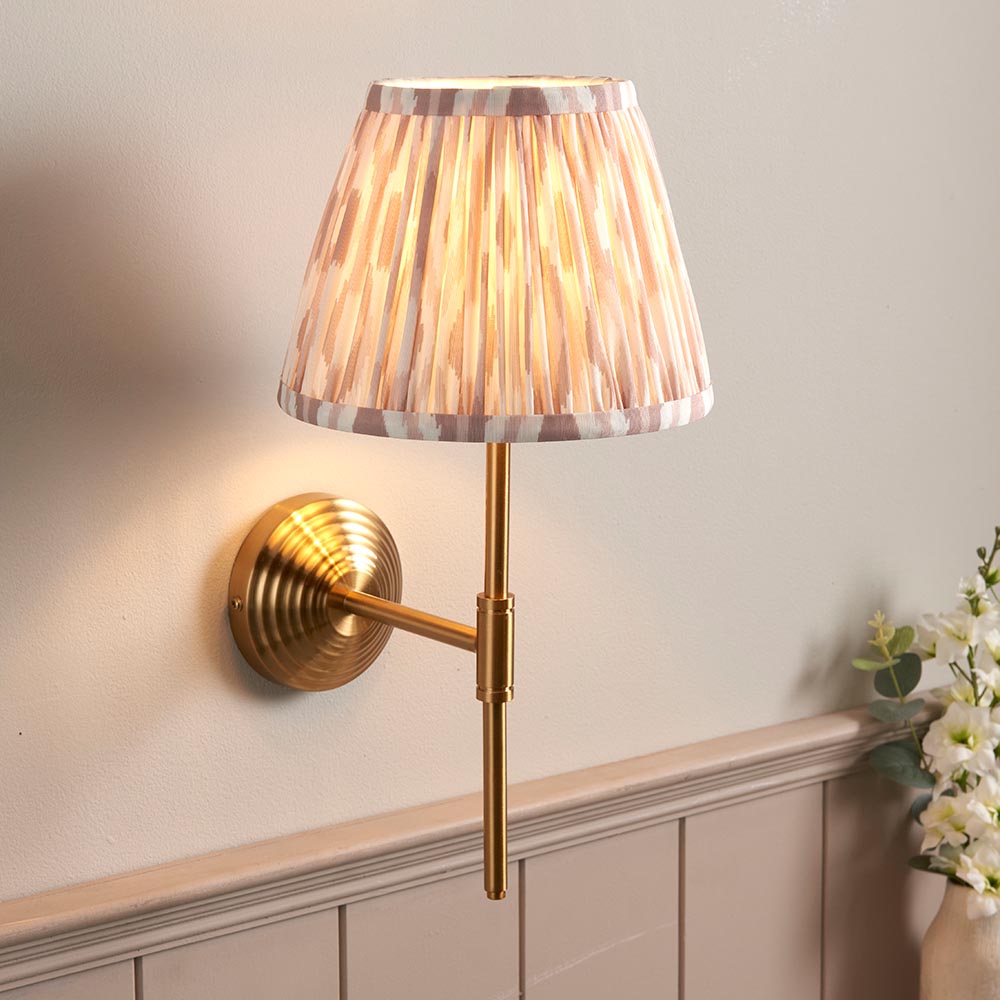 A multiple stepped wall light with an understated T shape arm. Perfect for many areas of your home, finished in brushed aged brass; completed with our natural 20cm Ikat shade for a classic look.