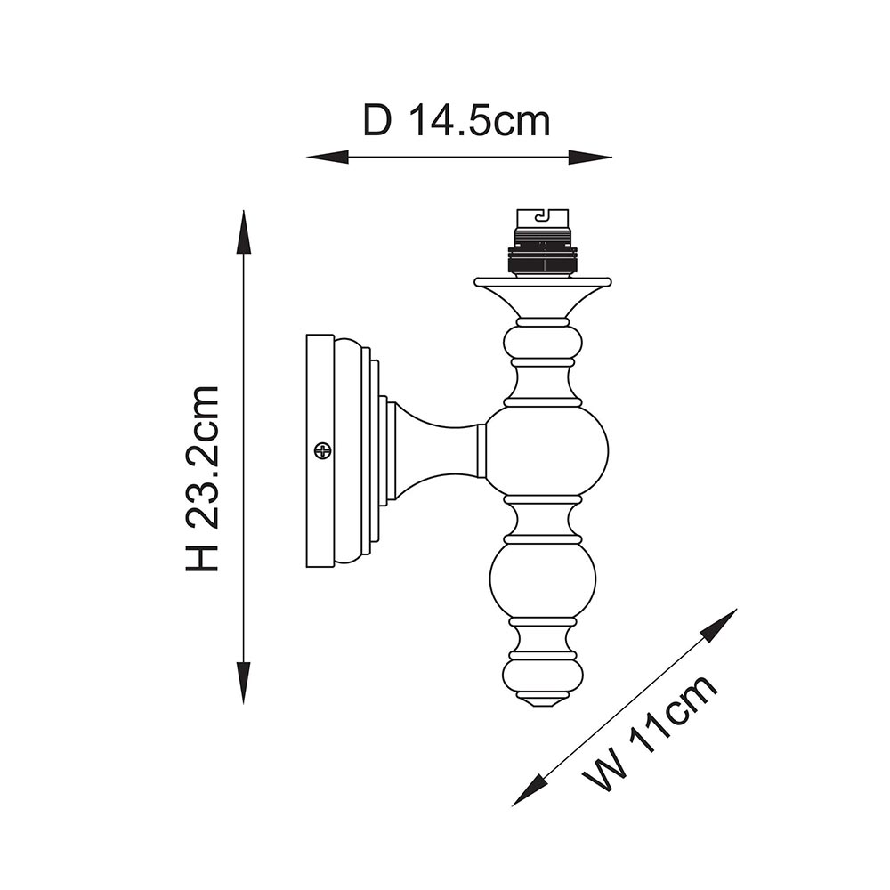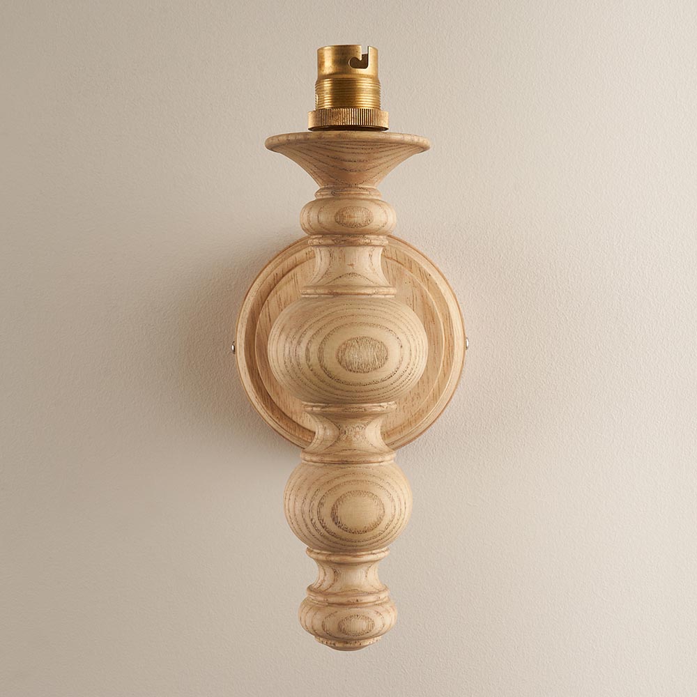 Beautiful natural Ash wooden turned spindle wall light, perfect for classic interiors, featuring a brass B22 lamp holder. Pair with one of our 16cm or 20cm decorative fabric shades for a unique classic look.