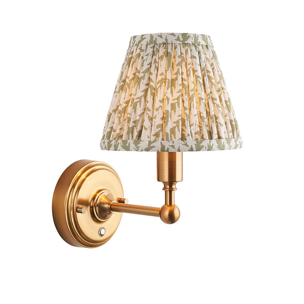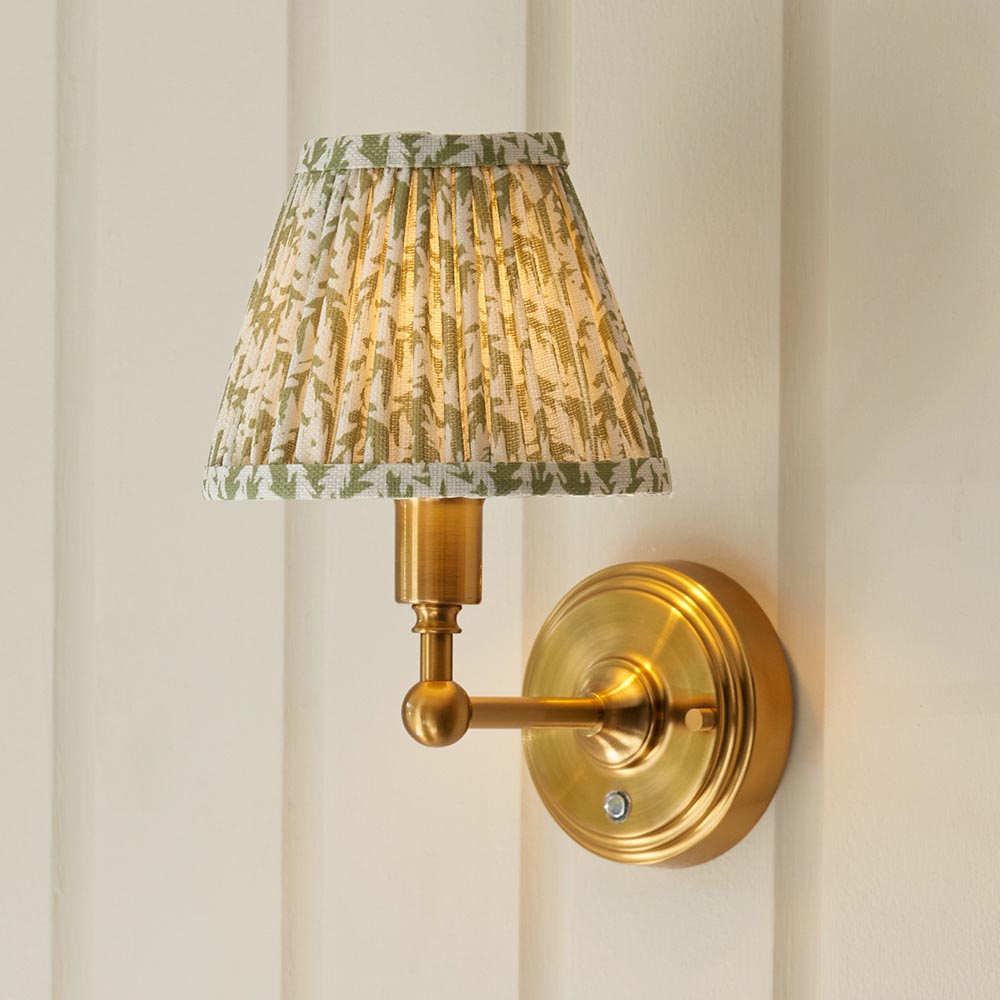 Not tied down by the need for a power cable, this portable, battery operated, rechargeable 3 stage touch dimmer wall light enables you to select your own level of light and can be fixed to any wall you choose. Classic in style and finished in aged brass making it easy to place around your home. Taking just 5.5 hours to fully charge and giving up to 36 hours of continuous light. Fix to shelving, hallway walls, in places where other lights cannot reach; the perfect versatile addition to your home. Finished with our subtle herb green 16cm Leaf shade for the perfect timeless style.