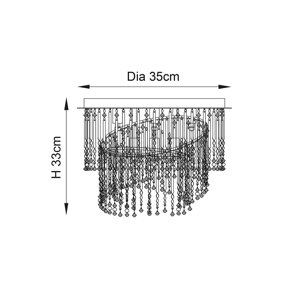 An impressive mutli light decorative flush adorned with a mix of delicate slender glass rods and faceted glass beads, cascade down the spiral design to create a stunning centre piece.
